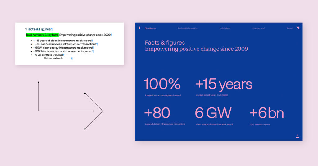 In der heutigen Informationsflut entscheiden Sekunden über Wahrnehmung oder Übersehen. Design lenkt diese Aufmerksamkeit gezielt auf die relevanten Inhalte. Durch große Typografie, klare Farbgebung und starke Kontraste werden Key Facts visuell inszeniert. Das erleichtert nicht nur das Lesen, sondern stellt sicher, dass zentrale Botschaften bei Investor:innen, Mitarbeitenden und der Öffentlichkeit schnell ankommen – und vor allem haften bleiben.