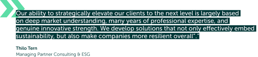 In this way, we firmly embed sustainability into day-to-day operations through the close integration of strategic consulting, technical implementation, and holistic process integration.”