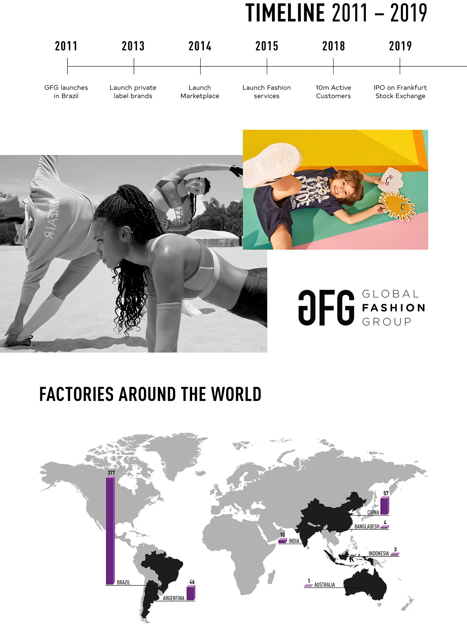 DER ERSTE GESCHÄFTSBERICHT nach dem IPO ist immer etwas ganz Besonderes. Wir begleiten unsere Kunden inhaltlich, konzeptionell und gestalterisch bei diesem wichtigen Teil der Stakeholderkommunikation. Das ist so nur möglich, wenn ein dezidiertes Team aus Finanz- und IR-Experten, Strategen und Designern eng gemeinsam mit dem Kunden zusammen an den neuen Inhalten arbeitet. Für GFG haben wir eine ganzheitliche Kommunikation erstellt, die die Unternehmensvison der „THE #1 FASHION & LIFESTYLE DESTINATION IN GROWTH MARKETS“ optimal für die Stakeholder aufbereitet. Der Geschäftsbericht, der starke Image-Teil zu „Growth+“ und die dazugehörige Kommunikation (Earnings presentation, Factsheet) zahlen ein auf das junge, digitale und marktspezifische Image des Fashion Start-ups und spiegeln die ambitionierten Ziele des stark wachsenden Unternehmens wider.