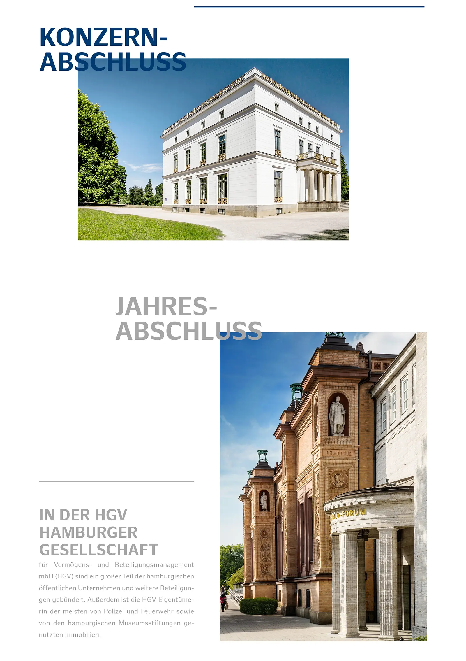HGV ist eine der größten „Beteiligungsgesellschaften“ in Händen unserer Gebietskörperschaft. Die Silvester Group liefert mit der professionellen Reporting-Unterstützung einen soliden Rechenschaftsbericht, der aufzeigt, dass die zahlreichen Aufgaben der Stadt leistungsfähige öffentliche Unternehmen und einen soliden Haushalt erfordern. Jedes Jahr wird das Reporting umfassend weiterentwickelt und angepasst. Frontcover, Stilelemente und Farbgebung spiegeln dabei das Selbstverständnis der Freien und Hansestadt Hamburg wider, die neben einer modernen Wirtschaftsmetropole auch ein bunter Medien- und Kulturhotspot ist.